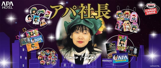 全国に700以上のホテル、11万以上の客室を有するアパホテルの看板をはじめ、メディアなどにも自ら広告塔として出演し活躍する、帽子を被った煌びやかな姿が印象的なアパ社長を起用したアミューズメント景品が登場。株式会社BANDAI SPIRITSの企画担当者がアパホテルに宿泊した際、アパ社長の顔写真が印刷された「アパホテルの天然水」から熱烈な視線を感じ、企画を発案。その後も街中にあるアパホテル看板の社長からのまっすぐな視線を避けきることができず商品化まで至った。