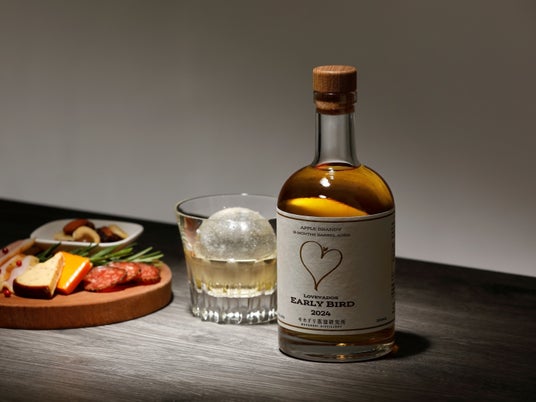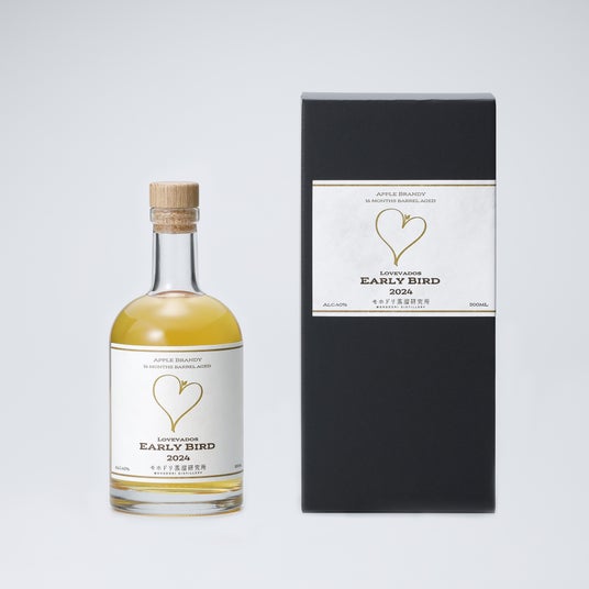 EARLY BIRD 2024は樽熟成期間が16カ月です。ブランデーの熟成期間としては短いですが、フレッシュで華やかなりんごと新樽の香りや風味が丁度よくしっかり感じられる頃合いで調整しています。英語で「The early bird catches the worm」(早起きの鳥は虫を捕まえる)ということわざがあります。早起きや早めに行動することが成功や利益をもたらすという意味です。このことわざから、短い熟成期間でも美味しい、喜んでもらえる商品という意味が込められています。