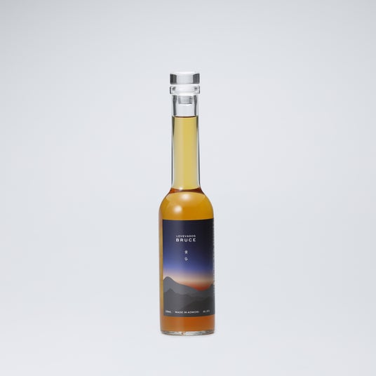使っているアップルブランデーの樽由来の色合いと希少品種りんごのレンガ色の果汁が合わさることで、青森の日本海側からみられる黄昏時の色合いに似ていることから『BRUCE 黄昏』に。