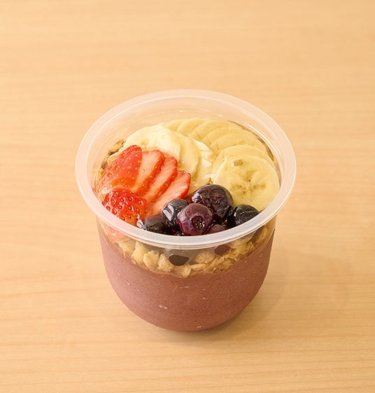 ■アサイーボウル R:1,540円 H:990円(税込)オリジナルブレンドのアサイースムージーの上に、グラノーラ・イチゴ・ブルーベリー・バナナをトッピングした定番のアサイーボウルです。