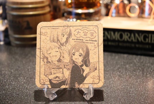 三姉妹が描かれたかわいいコルクコースター(サイズ:90mm)