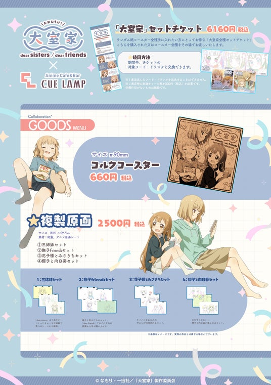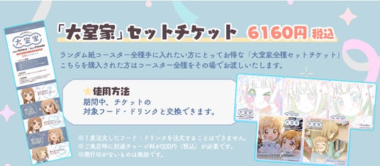 すべてのコラボメニューが楽しめ、かつノベルティ全種を揃えられる『大室家』セットチケットも販売しております。