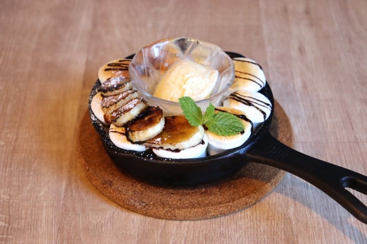 1作目『大室家 dear sisters』で登場した「焼きバナナマシュマロチョコアイスバー」をイメージしたスキレットスモアです。自家製のバニラアイスを添えてあります。