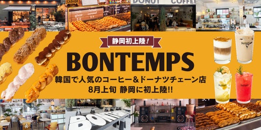 SNS映えのするドーナツとして人気の韓国カフェブランド『BONTEMPS(ボンタン)』。日本初上陸となる大阪「アメリカ村本店」、東京初進出の「中目黒店」では現在も行列がつづき、夕方には商品がなくなることも。人気にお応えし、8月上旬静岡初進出となる「静岡店」のオープンが決定いたしました。