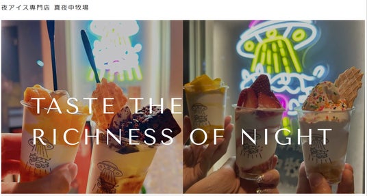 真夜中牧場(https://mayonakafarm.com)は、東京の夜でも牧場で食べるような濃厚アイスクリーム(独自にブレンドした濃厚なクリームと厳選された素材から作られる)を楽しむことができます。一日の終わりのご褒美として、またはお酒のあとの締めアイスとして各種メディアでも話題沸騰中です。