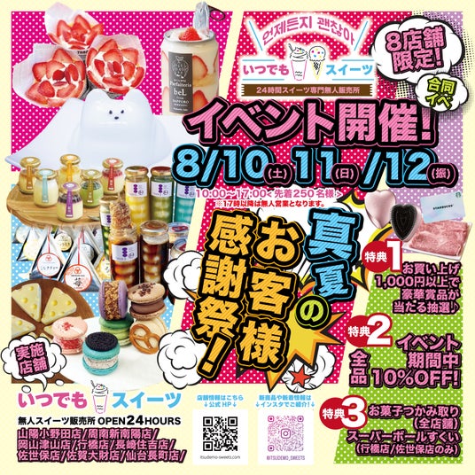 【いつでもスイーツ真夏のお客様感謝祭8月10日、11日、12日に開催致します!】