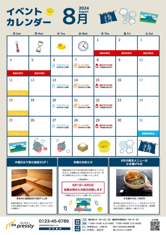 今なら、お問い合わせいただくだけで、「入浴の基本」や「サウナの楽しみ方」など、選べるオリジナルポスターデータを1種類プレゼントしていますので、この機会にぜひお問い合わせください。