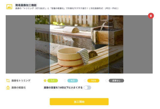 直感操作!便利なトリミング・画像軽量化機能を搭載