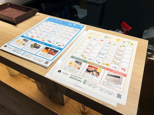 カレンダーの印刷配布で再来店促進!こちらの施設では、カラー印刷したイベントカレンダー(A4)を配布用に設置することで、持ち帰りを促しています。自宅に掲示してもらうことでイベントが目に入り、再来店の促進に繋がっています。
