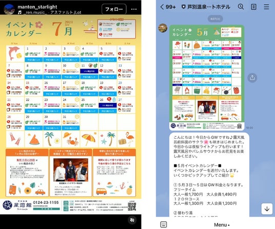 魅力的な情報発信で再来店誘致!HPやSNSなどの情報発信に活用することで、より効果的な来店誘致が可能となります。こちらの施設では、常連のお客様の再来店を促すために、公式LINEアカウントをはじめとするSNSでイベントカレンダーを送付しています。