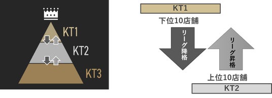 串カツ田中全店舗を3部制のリーグに分け、ポイントを競い合うことで順位付けし、約半年ごとに上位リーグへの昇格・もしくは下位リーグへの降格の基準を設けています。