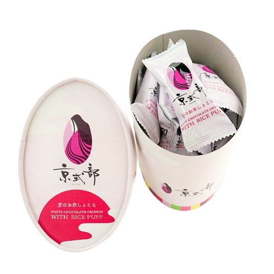 京都産特別栽培米『京式部』が原料の米パフを使用したホワイトチョコクランチです。