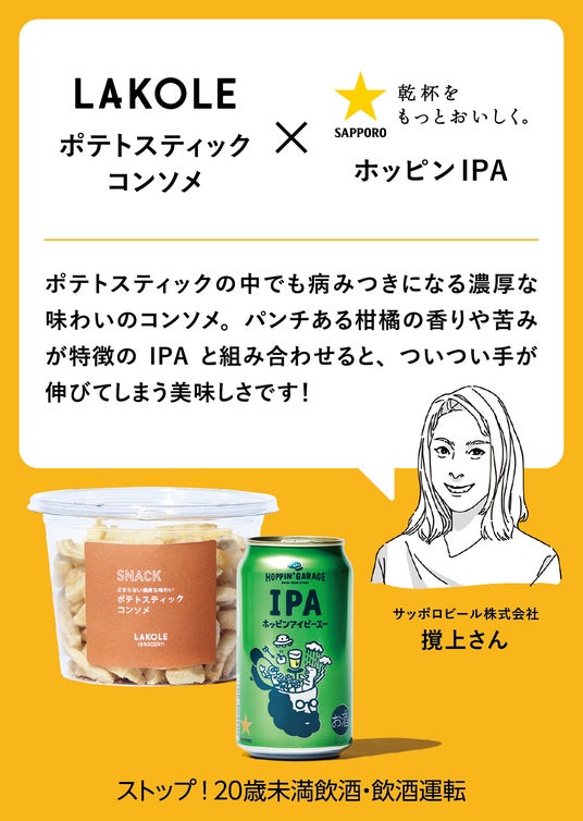 「Play fashion!」をミッションに掲げ、”グッドコミュニティ共創カンパニー”を目指す株式会社アダストリア(本部:東京都渋谷区渋谷2-21-1、代表取締役社長:木村 治)が展開するライフスタイルブランド「LAKOLE(ラコレ)」は、サッポロビール株式会社が展開するクラフトビールブランド「HOPPIN' GARAGE(ホッピンガレージ)」と初のコラボレーションとして、ビールとグロサリーのペアリング提案をいたします。双方のビールとグロサリーの商品企画担当者がこの夏おすすめの組み合わせをセレクトし、展開店舗・特設サイトにて2024年7月26日より、コンテンツを公開。合わせてグロサリーとビールのセットが当たるプレゼントキャンペーンも実施いたします。