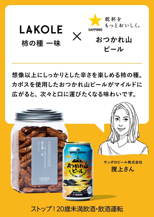 「LAKOLE」のグロサリーの幅広いラインアップの中から、「HOPPIN' GARAGE」の多様性あふれるビールに合う一品をペアリングしてご提案します。双方の商品企画担当者がこの夏おすすめの組み合わせを5つセレクトしました。