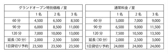 ※4名様以上の場合は、増員お一人様につき3,000円頂戴いたします。
