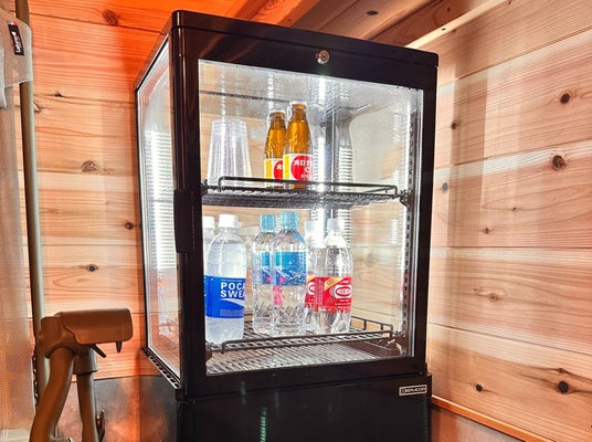 プライベートサウナ内にある冷蔵庫のお飲み物は全て無料。サウナ愛好家の中で親しまれている”オロポ”(※)もご用意しております。また、プライベートサウナのご利用者限定でご利用いただける休憩スペース兼パウダールームも完備。ドライヤーも設置されているのでゆっくりと身支度していただけます。