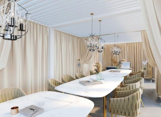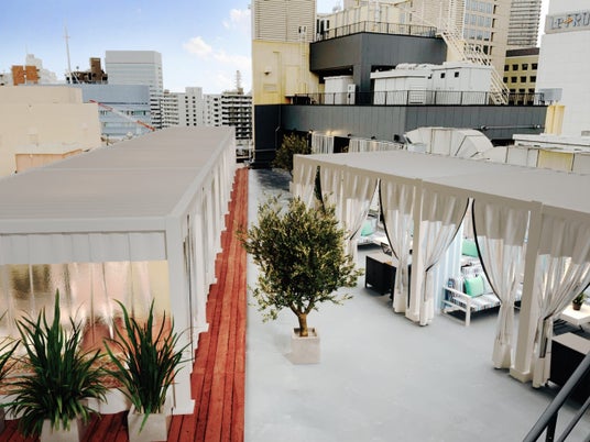 施設内には10名席と18名席の2つの席を配置し、海外から輸入したラグジュアリーな家具と日よけ・雨よけ完備のパーゴラを使用し、リゾート感&非日常空間を演出。