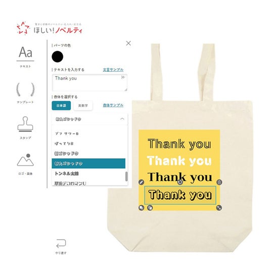 デザインシミュレーターでは、そんなデザイン業界御用達の書体を無料で使用して、おしゃれなノベルティを作成することができます。