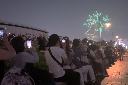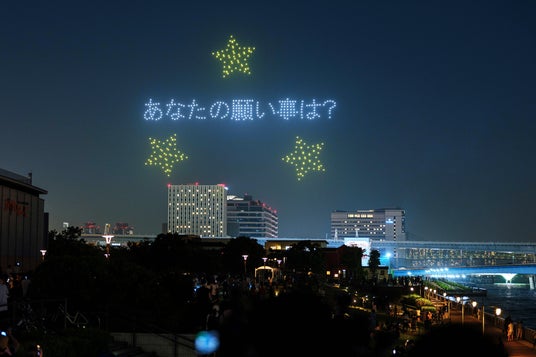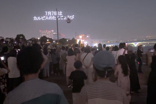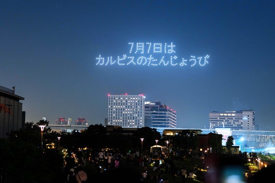 ドローンショーでは、七夕の夜空にカルピス(R)の天の川、織姫(おりひめ)・彦星(ひこぼし)や短冊の願い事などがドローンの光で表現され、観覧場所となった豊洲公園にはカップルやお子様連れの家族など約5,000人(現地スタッフ調べ)の観覧者が集まり、大きな歓声が上がりました。