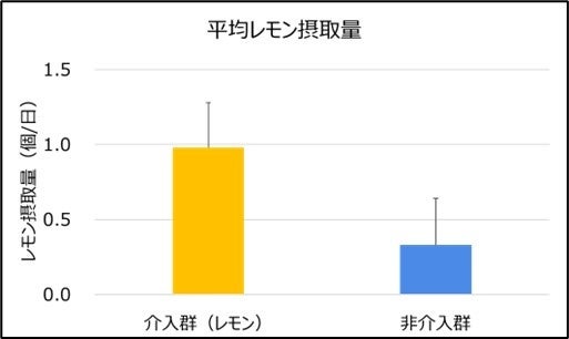 レモン介入群は、ほぼ1日1個分(果汁として約30ml)のレモンを摂取しており、レモン非介入群においても、およそ3日に1個分のレモンを摂取していました。