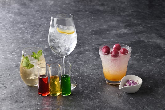 ジントニックとモヒートの2種をご用意。ペイントアートのパフォーマンスをイメージした添え付けのカラーシロップで、オリジナルカクテルに仕上げてお召し上がりいただけます。