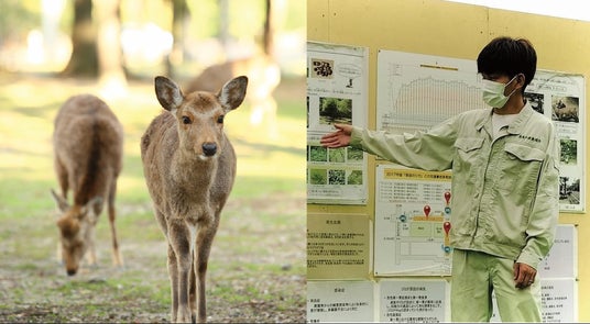 「奈良のシカ」は、奈良公園内に1,300頭以上生息し、都市の近くで人々が自由に野生動物に親しめる他に類のない非常に貴重な存在です。