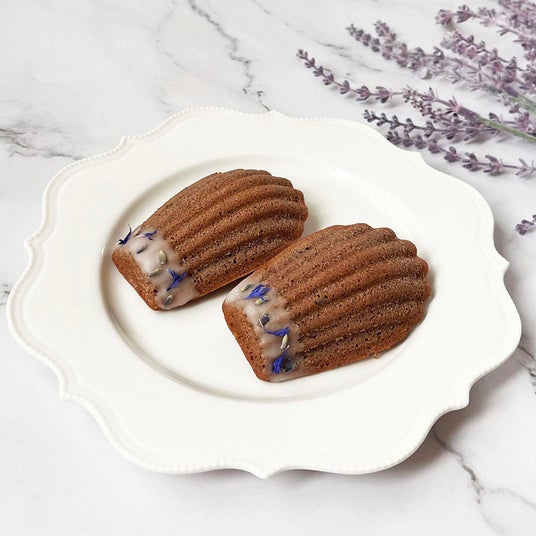 オーガニック栽培された濃厚で繊細な香りが特徴の有機ラベンダーを生地に混ぜ込み、食用エッセンスで風味付けしました。生地の色はビーツパウダーとスーパーフードの有機マキベリーパウダーで色付け。トッピングには有機ラベンダーとエディブルフラワーのコーンフラワーで華やかさをプラスしました。