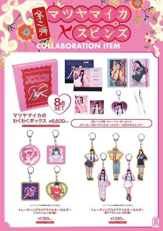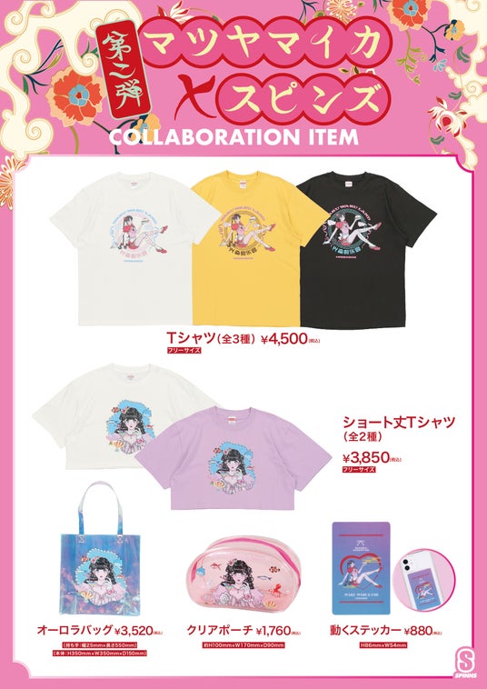 昨年3月にコラボレーション第一弾を実施。マツヤマイカ本人が描くアートを描き下ろし、様々なグッズを展開した。今回は中華テイストで描き下ろしてもらい、デザインはSPINNSが落とし込んだ。