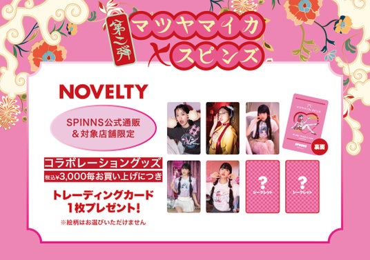 ・SPINNS公式通販/対象店舗:コラボレーションアイテムを税込3,000円ご購入毎にトレーディングカード(全7種)をお渡しします。