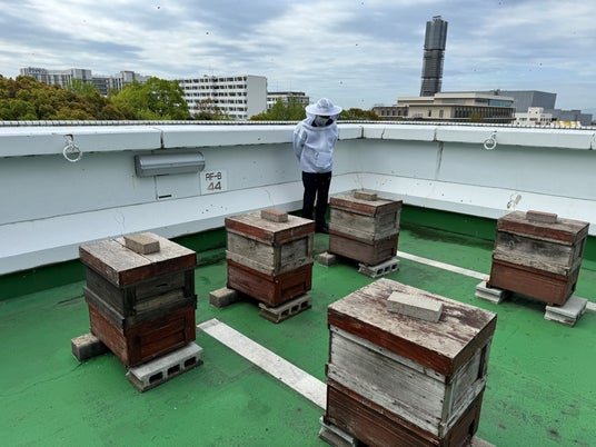 人工島ポートアイランド内の蜜源から花蜜が集められる