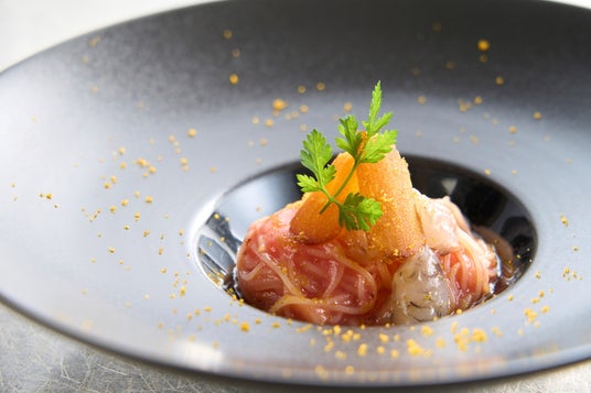 自然派イタリアンの巨匠・植竹隆政シェフが手掛けるお料理の特徴は、イタリアンには必須のニンニク・唐辛子は一切使わず、オリーブオイルと素材同士の組み合わせ、素材の持ち味を大切にした調理法でメニュー構成されています。そのため身体への負担がかからず、旅行中で少し疲れたお腹にも優しく、小さなお子様からお年寄りまで幅広い年齢層に喜んでいただきたいというシェフの想いが込められています。当レストランで提供するコラボメニューは、沖縄県産の黒毛和牛、沖縄ブランド豚「キビまる豚」、沖縄ではお祝いなどのハレの日にいただく島やぎ、魚介も沖縄県産にこだわり、車海老や、高級魚アカマチ・ミーバイ・南大東島産平目、そして旬の島野菜など、地元食材をふんだんに使用したコース料理と合わせて、ワインや泡盛、オリジナルカクテルなどのペアリングもお楽しみいただけます。