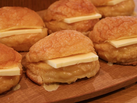 メロンパンにチーズとバターをはさみました。
