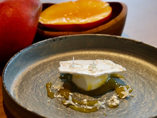 期間中ディナー限定ドルチェ「八角と丁子のパンナコッタ 台湾産マンゴーソースがけ」