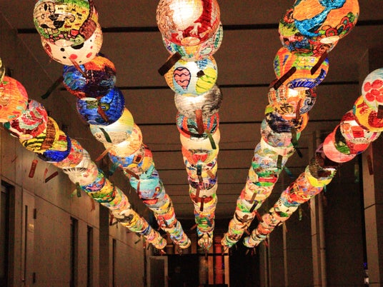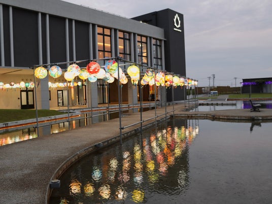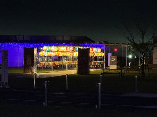 1.約180個のランタンが36mにわたって並ぶ!屋根があり雨でも楽しめるピロティエリア