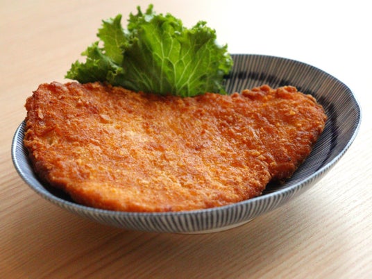 鶏胸肉を叩いて延ばし豪快に1枚で揚げる、見て満足、食べて満足の一品です。