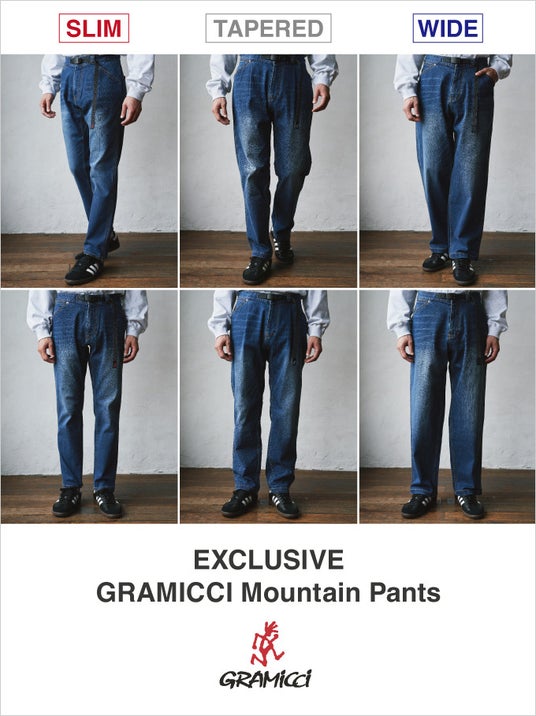 URBAN RESEARCH DOORSが誇るロングセラーアイテム、「Mt Design 3776別注 GRAMICCI Mountain Pants」。表情のあるストレッチデニム生地や、コインポケットや左右非対称のバックポケットにそれぞれリベットを打つ別注デザイン、細身のすっきりとしたシルエットが長年ご好評いただき、シリーズ累計販売数は10万本を突破。