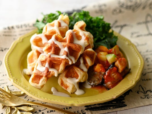 \ 甘じょっぱいサラダアレンジ♪/ほんのり甘いクロワッサン生地は、サラダとも相性抜群!色鮮やかなデリ達と、さっぱりドレッシングを纏わせればお食事系『クロッフル』の完成!