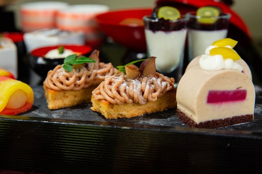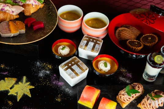 紅葉をイメージした鮮やかなセイボリーとスイーツが並び、五感で京都の秋を楽しめるラインナップをぜひお愉しみください。