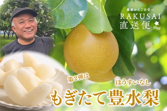 楽彩株式会社(本社:東京都足立区/代表取締役社長:大崎善保)は、千葉県鎌ケ谷市山崎梨園 の“もぎたて豊水梨”を7月29日(月)より100セット限定で予約販売をいたします。採れたての梨を大田市場から食べごろの状態でご自宅に直送いたします。RAKUSAI直送便にて“もぎたて豊水梨”をお楽しみください。
