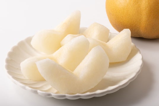 山崎梨園のもぎたて豊水梨は、生産者が味と香りを見極めて最高のタイミングで収穫するので、採れたての新鮮な梨をお楽しみいただけます。良質で新鮮な梨は、果汁を多く含んでずっしり重みがあり、軸がしっかりとして果皮に色むらがなく、お尻がふっくらしているのが特徴です。もぎたて豊水梨は果皮に張りがあり、しゃりしゃりとした食感に加え、甘酸っぱい果汁をたっぷり含んでいるので、味も香りも別格です。