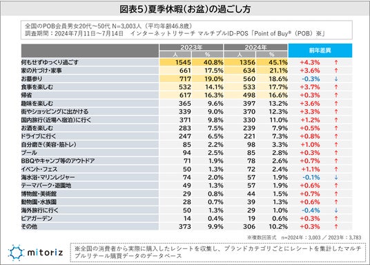 夏季休暇の過ごし方は「何もせずゆっくり」が45.1%(昨年比+4.3%)で2年連続最多に