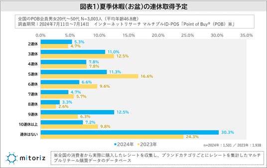 ・連休取得の予定日数は「9連休」が12.5%で最多に!一方で「連休はない」が昨年より6%増加