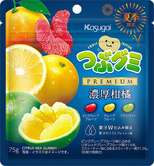 春日井製菓株式会社(本社:愛知県名古屋市西区、代表取締役社長 春日井大介、以下 春日井製菓)は、「つぶグミ」の大人気シリーズ「つぶグミPREMIUM」から、『つぶグミPREMIUM濃厚柑橘』を7月29日(月)より全国の一部コンビニエンスストアで発売いたします。ピンクグレープフルーツ・グレープフルーツ・スウィーティーと、夏にぴったりな3種の柑橘の食べ比べをお楽しみいただけます。