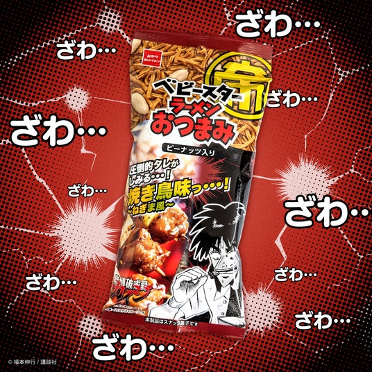 株式会社おやつカンパニー(本社所在地:三重県津市 代表取締役社長:横山正志)は、大人気漫画『カイジ』とコラボし、「ベビースターラーメンおつまみ(圧倒的タレがしみる…焼き鳥味っ…!~ねぎま風味~)」を2024年7月29日(月)より、企画限定商品として全国にて発売します。