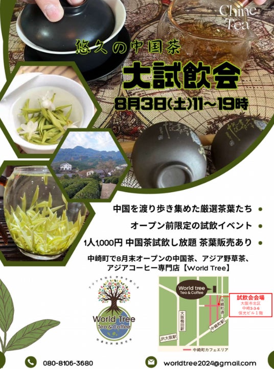 2024年8月12日、大阪中崎町に新しいティー&コーヒーショップ「World Tree」がオープンいたします。当店では、中国で直接仕入れた高品質の中国茶、厳選されたアジアの野草茶、そしてアジア各国のユニークなコーヒーを取り揃え、お客様に新しい味覚の旅をご提案いたします。
