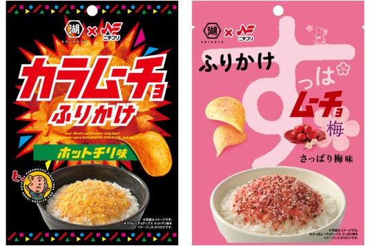 湖池屋の人気商品である『カラムーチョチップス ホットチリ味』および『すっぱムーチョチップスさっぱり梅』を再現しました。ニチフリの強みである「再現力」を活かした“コラボふりかけ”は、湖池屋とのコラボレーションから始まりました。湖池屋カラムーチョが40周年を迎えた今年、両社が再度タッグを組み、より再現度高くパワーアップした商品に仕上げました。暑さやジメジメで食欲も減退する季節にもごはんが進むふりかけです。