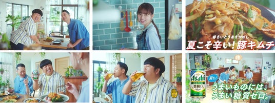 「夏のさいとうあすかめし」篇では、SNSに「さいとうあすかめし」と題して、自身で作った料理を投稿するほど料理が好きな齋藤さんが、仲の良いバナナマンの2人に手料理を振る舞います。バナナマンの2人と齋藤さんの「飛鳥ちゃん、今日のメニューは?」「内緒」という掛け合いから始まり、齋藤さんが「おりゃ~」と言いながら“豚キムチ”を豪快に盛り付ける様子を描いています。日村さんが「糖質ゼロのこれ~」と言いながら、3人がおいしそうに「スタイルフリー」と料理を楽しむシーンを通じて、「うまいものには、うまい糖質ゼロ。」というブランドメッセージを訴求します。
