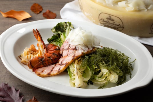 オマール海老と沼津産“海ぶどう”と厚切りベーコンのシーザーサラダ ~ラスパドゥーラ仕上げ~