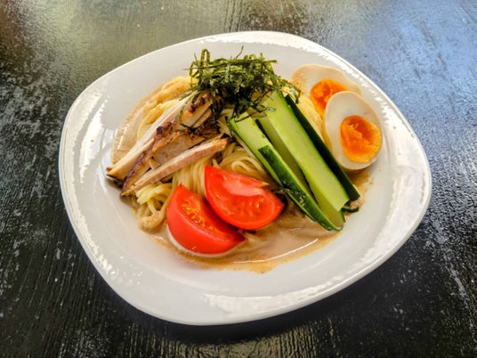 特製冷やし中華 1130円 ※夏季限定麺屋剛特製「冷やし中華」!冷たい中太麺に、豚骨とゴマの風味の豊かな酸味のきいたタレでおお召し上がりください