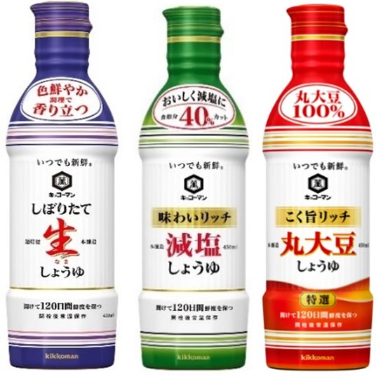 キッコーマン食品で販売するしょうゆの1リットルペットボトルのうち、「こいくちしょうゆ」「特選 丸大豆しょうゆ」「減塩しょうゆ」「うすくちしょうゆ」「あまくちしょうゆ」「まろやか丸大豆しょうゆ」の一部商品より順次切り替えます。(*3)